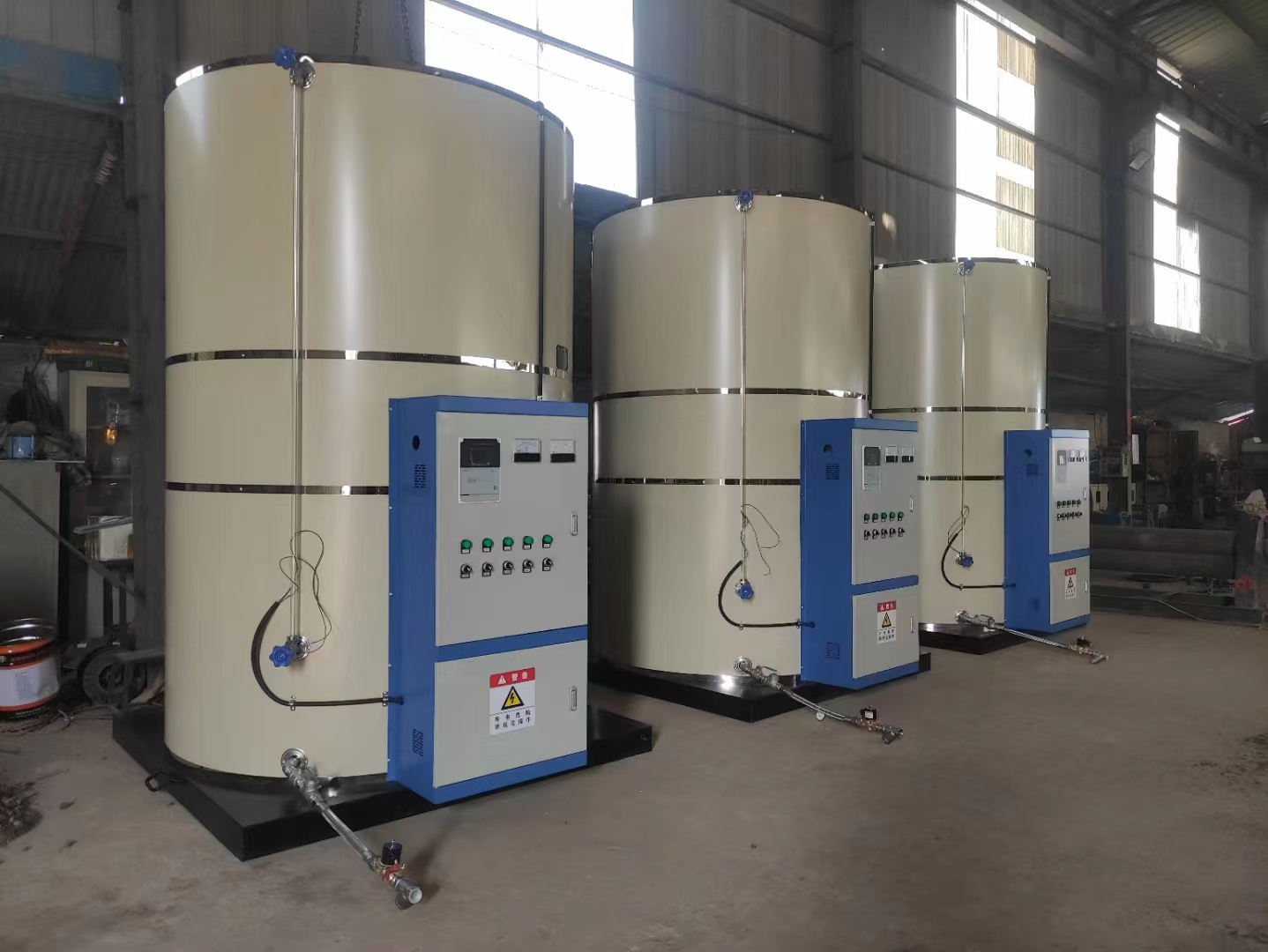京凱食品保定有限公司訂購(gòu)了三臺(tái)75千瓦3500升易除垢型分艙式電開水鍋爐,一輛6.8米卡車正好裝下,2月27日下午發(fā)貨,明天一早到達(dá),專車送貨更安全!